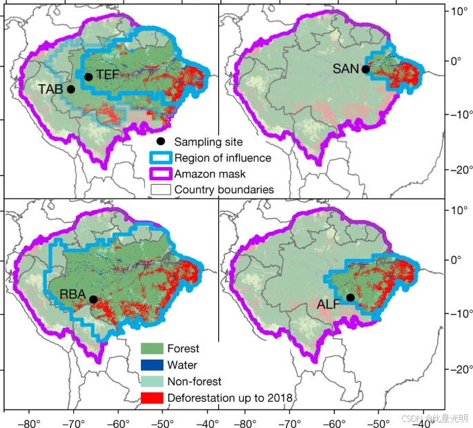 土地利用和气候的变化可能会改变热带森林土壤的水分和基质有效性,但对资源限制作为土壤痕量气体通量调节因素的作用的定量评估相当有限。本研究的主要目的是量化水分和基质有效性对亚马逊再生林土壤痕量气体通量的影响。我们测量了两种实验操作对土壤中二氧化碳 (CO2)、一氧化氮 (NO)、一氧化二氮 (N2O) 和甲烷 (CH4) 流出量的影响。在第一种实验中,我们通过灌溉增加了旱季土壤的水分有效性;在第二种实验中,我们通过持续去除地上凋落物降低了基质有效性。在没有灌溉的情况下,旱季土壤二氧化碳流出量减少,而灌溉使土壤二氧化碳流出量维持在与雨季相似的水平。在土壤湿润期和干涸期,我们观察到土壤二氧化碳流出量的巨大变化,这与水分对呼吸作用的显著限制相一致。 2001 年和 2002 年,灌溉地块的年土壤碳通量分别比对照地块高 27% 和 13%。凋落物清除显著降低了土壤二氧化碳通量;2002 年,清除凋落物地块的年土壤碳通量比对照地块低 28%。对照处理组的年土壤碳通量:凋落物碳比率 (4.0-5.2) 与之前报告的再生林值一致,表明地下碳分配相对较大。一般而言,雨季 N2O 和 CH4 通量较高,旱季灌溉期间两种通量均增加。NO 通量没有季节性影响。凋落物清除对 N 氧化物或 CH4 排放没有显著影响。 土壤净硝化作用对旱季灌溉没有反应,但去除枯枝落叶会有所降低。总体而言,这些结果表明土壤水分和基质对土壤痕量气体排放(尤其是二氧化碳)有显著的限制作用,并表明改变水分和基质可用性的气候和土地利用变化可能会对大气化学产生影响。