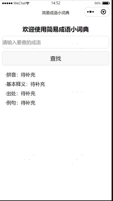5. <view class="title">欢迎使用简易成语小词典</view>