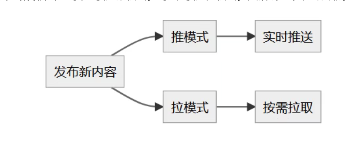 推模式(写扩散):当用户发布新内容时,立即推送到所有粉丝的Feed流。适合于小V场景。 -