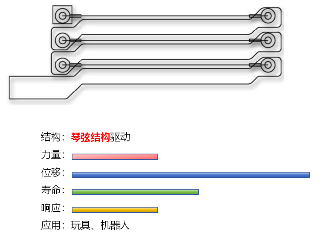 我们将一根钛丝,两端固定,中间作为驱动点,钛丝的驱动点和固定点形成三角函数关系,我们可以利用勾股定理得到类似杠杆的放大效果,得到更大的驱动位移量。