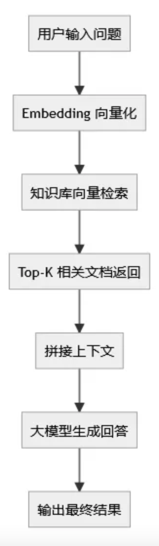 简单来说,RAG 是“先检索,再生成”: 用户提问后,系统先去知识库里找资料(Retrieval),再让大模型基于资料生成回答(Generation)。