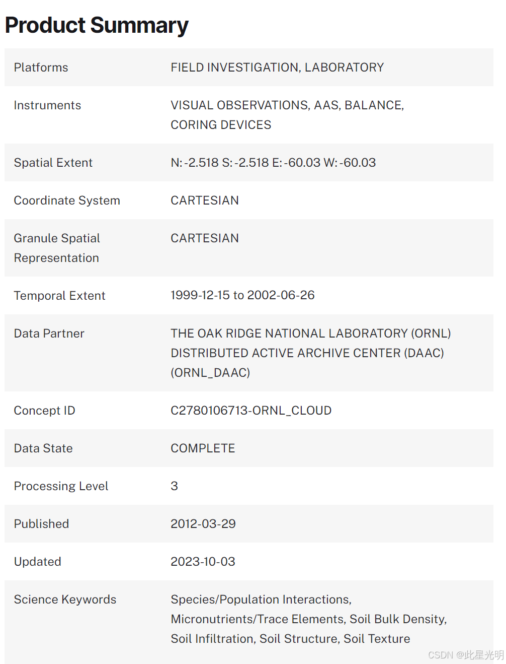 【摘要】 LBA-ECO ND-04 Termite Mound and Soil Characterization, Amazonas, Brazil: 1999-2001简介本数据集报告了巴西亚马逊州马瑙斯市郊外联邦公路 BR 174 53 公里处苏弗拉马农业区巴西农业研究公司(Embrapa)研究站开展的关于土堆白蚁的综合研究结果。研究区域包括一片原始森林、一片相邻的 7-8 年生次生林,以及...