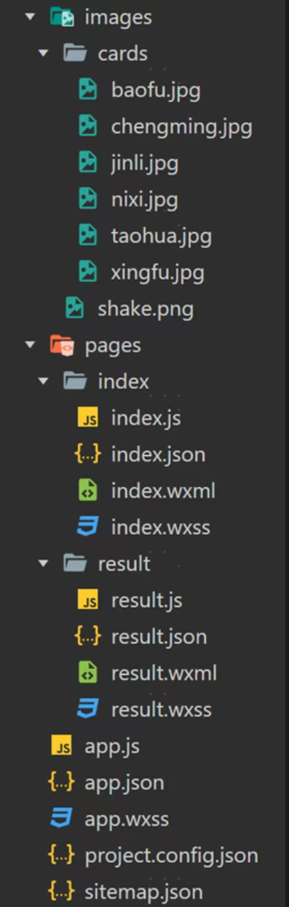 为了图片素材分类更明确,还可以在images中继续新建cards文件夹把幸运签图片单独放置。相关图片素材如下: