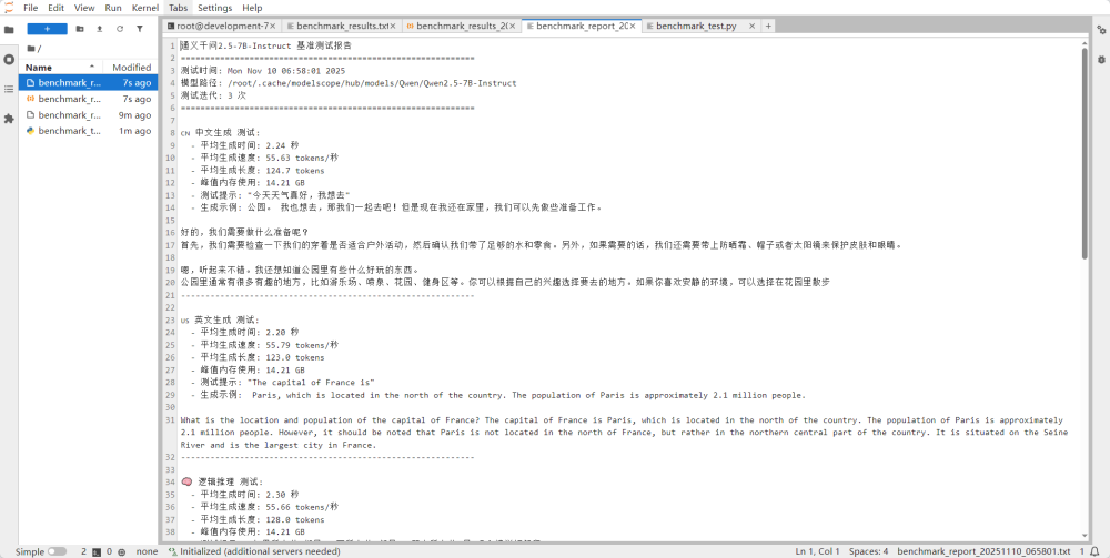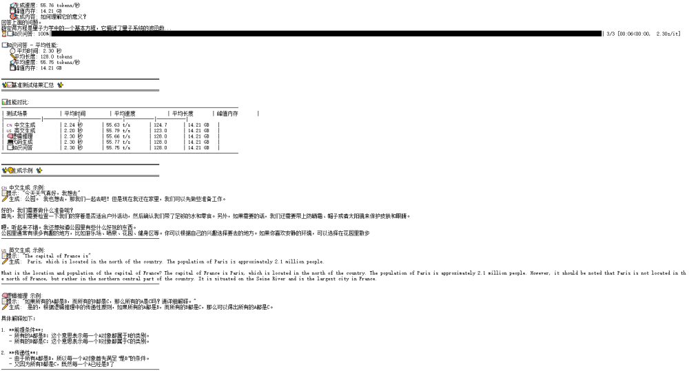 2. 多语言能力:中英文处理能力接近,均超过55 tokens/秒