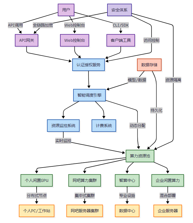 整合全国分散闲时算力,包括个人/网吧/智算中心 |