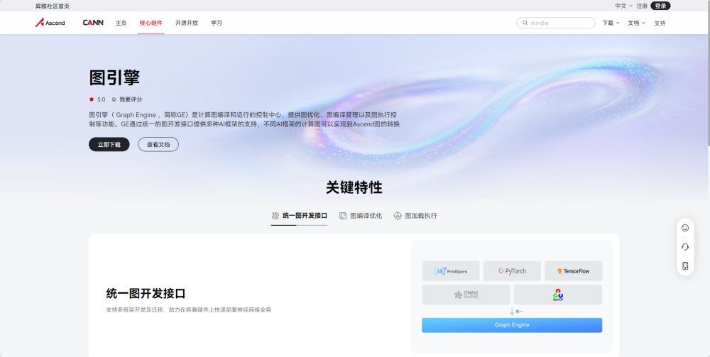 GE 图引擎(Graph Engine)是华为 CANN 异构计算架构中的核心组件,作为计算图编译和运行的控制中心,它负责将来自上层 AI 框架(如 PyTorch、TensorFlow、MindSpore 等)的计算图进行解析、优化和调度,最终在昇腾 AI 处理器上高效执行。 在 CANN 的软件架构中,GE 图引擎位于中间层,向上对接各种 AI 框架,向下服务昇腾 AI 处理器,发挥着承上启下的关键作用。