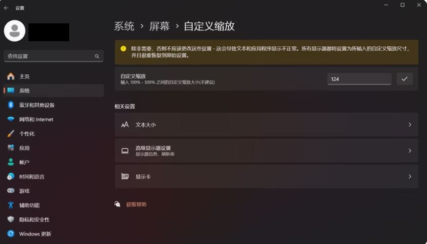 【摘要】 由于多数软件未适配高DPI,系统默认150%缩放导致内容过少,100%则文字太小。推荐将"自定义缩放"设为124%,既能保证清晰度又不会牺牲显示内容。
