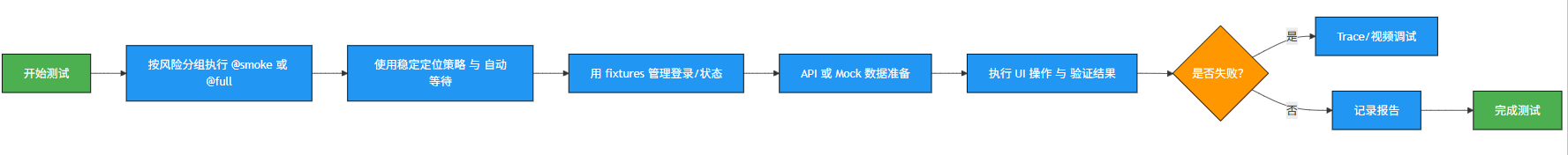 高风险场景(登录、下单、支付)快速精准覆盖并严格断言。 -