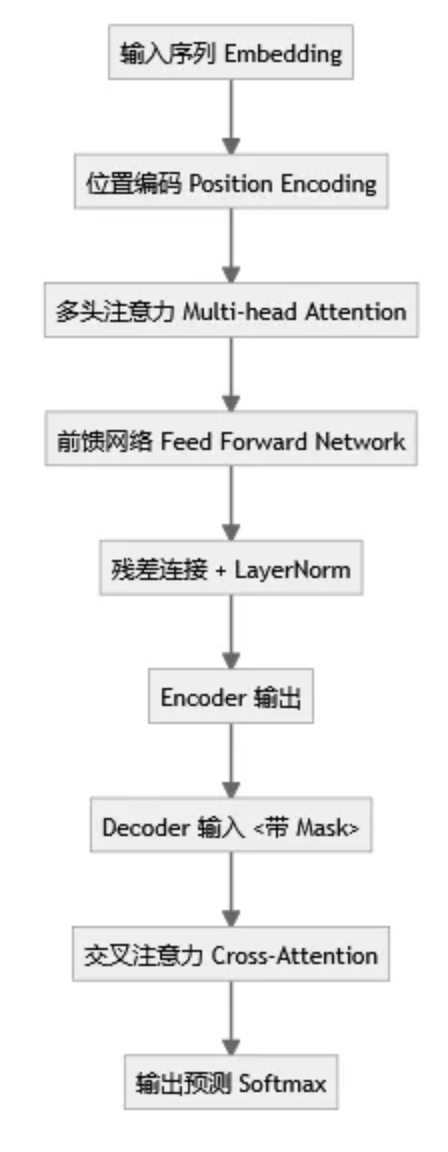 Decoder 在计算时会使用 Encoder 输出的上下文向量进行 cross-attention。 测试重点:mask机制正确性、上下文对齐性。