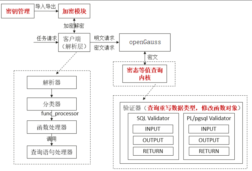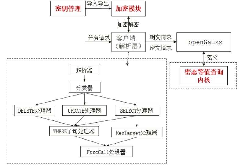 全密态数据库对 openGauss 内核进行了深度改造,实现了 "查询解析→执行计划→数据访问→结果返回" 全链路密文处理能力