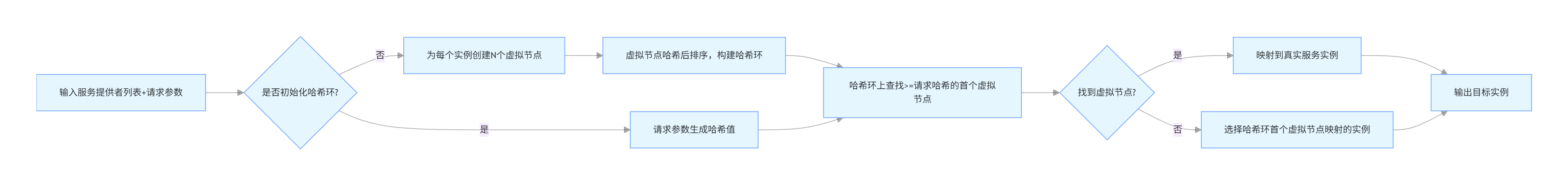 基于一致哈希的负载均衡算法通过哈希算法将请求映射到特定的服务提供者上,确保相同的请求总是被路由到同一台服务器。这种方法特别适合于需要会话保持或数据局部性的场景。