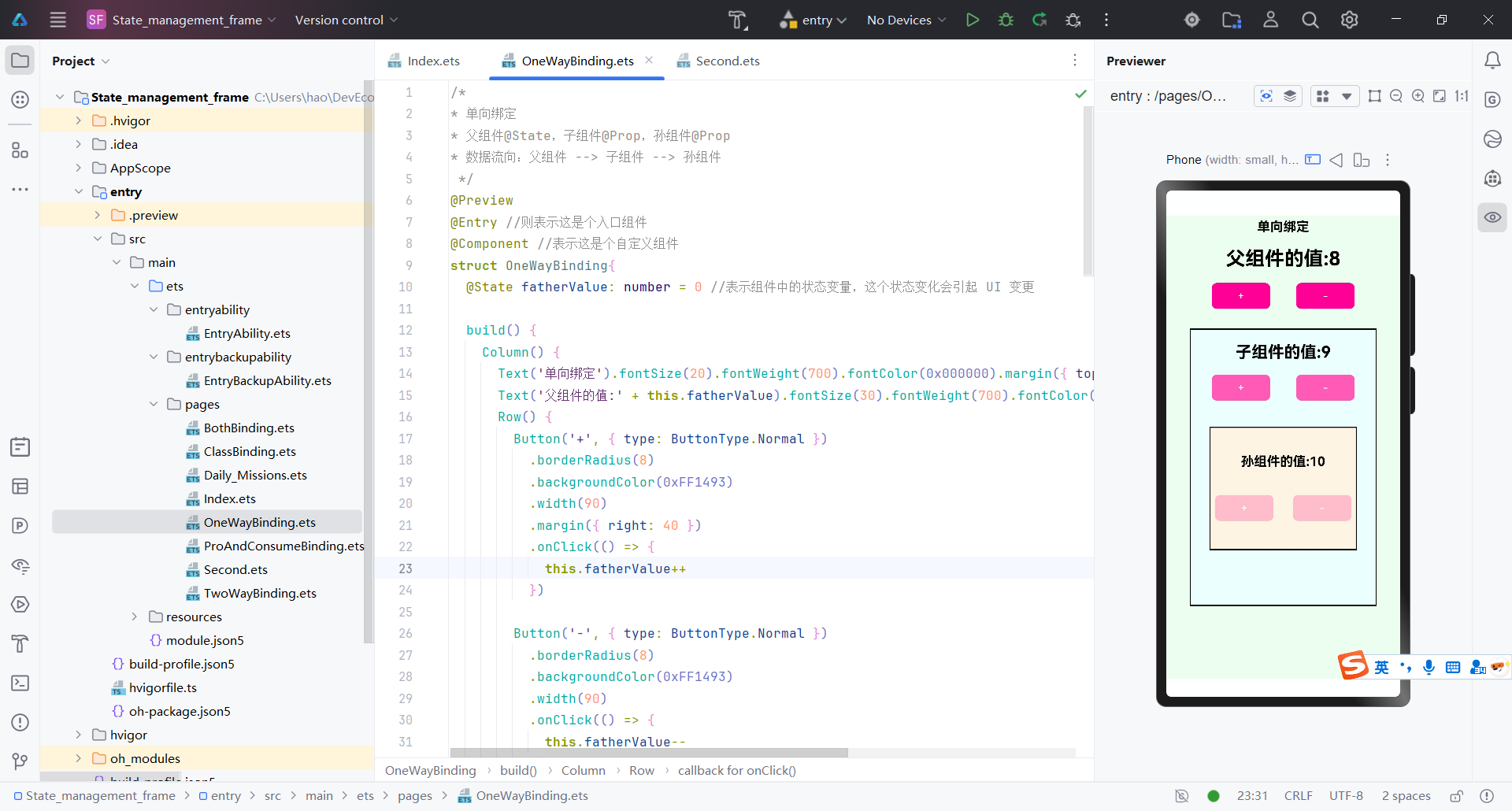 鸿蒙应用入门级开发者认证实验二(状态管理装饰器)