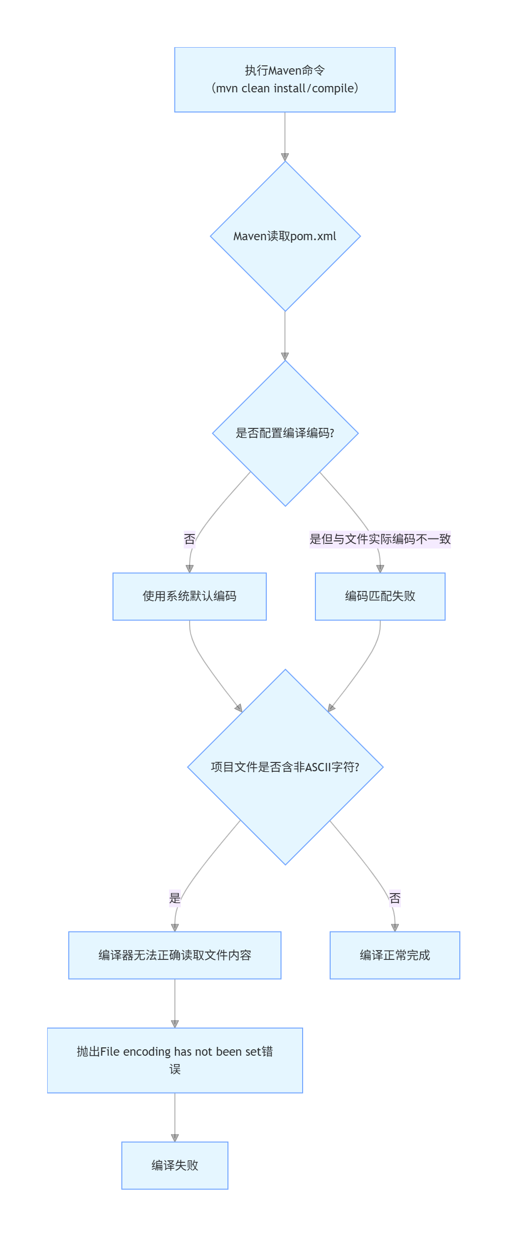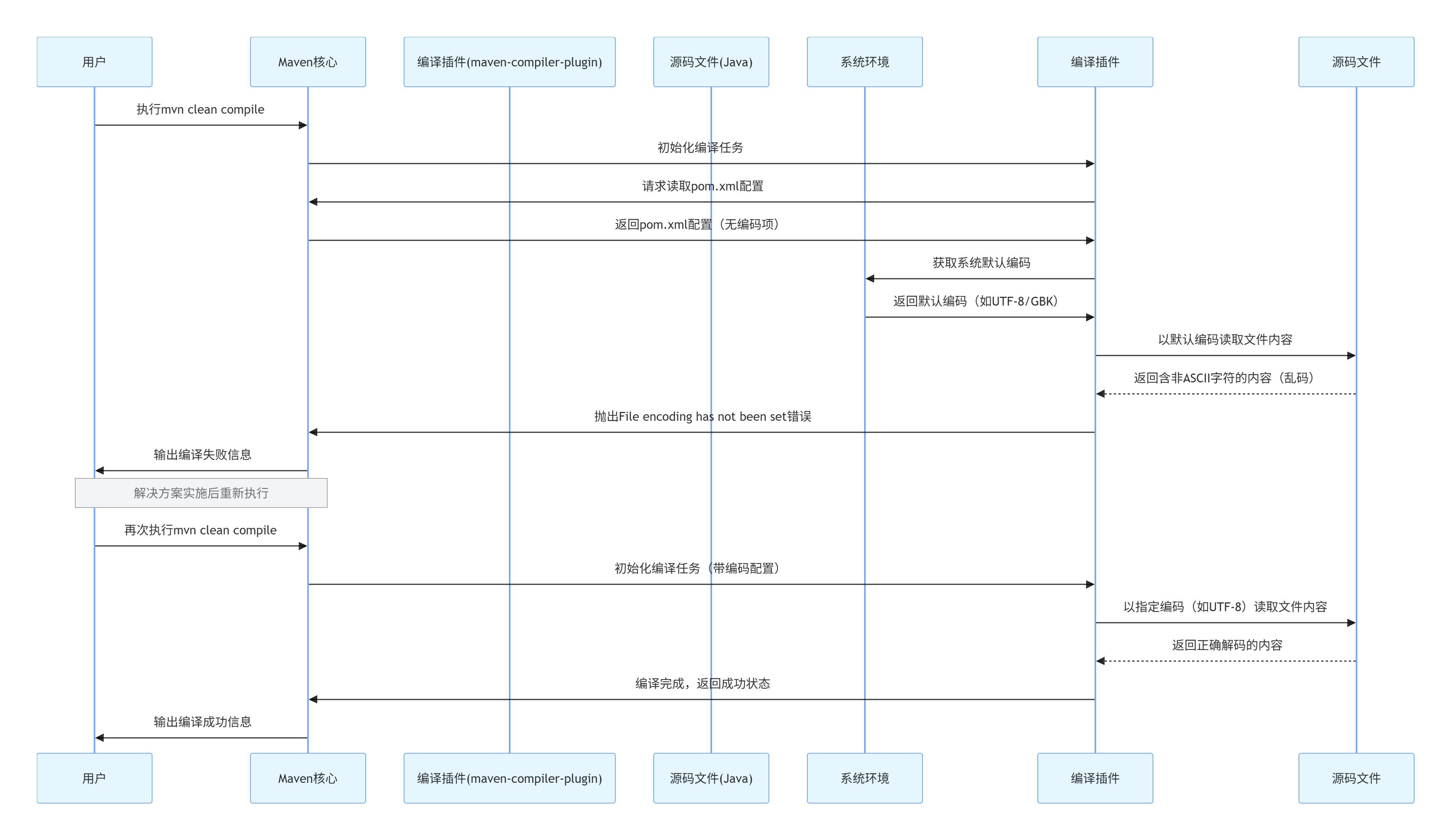 最直接的原因是Maven编译插件(maven-compiler-plugin)使用的编码与项目文件的实际编码不匹配。当Maven尝试读取和编译这些文件时,由于编码设置不当,导致读取失败或乱码,进而编译失败。
