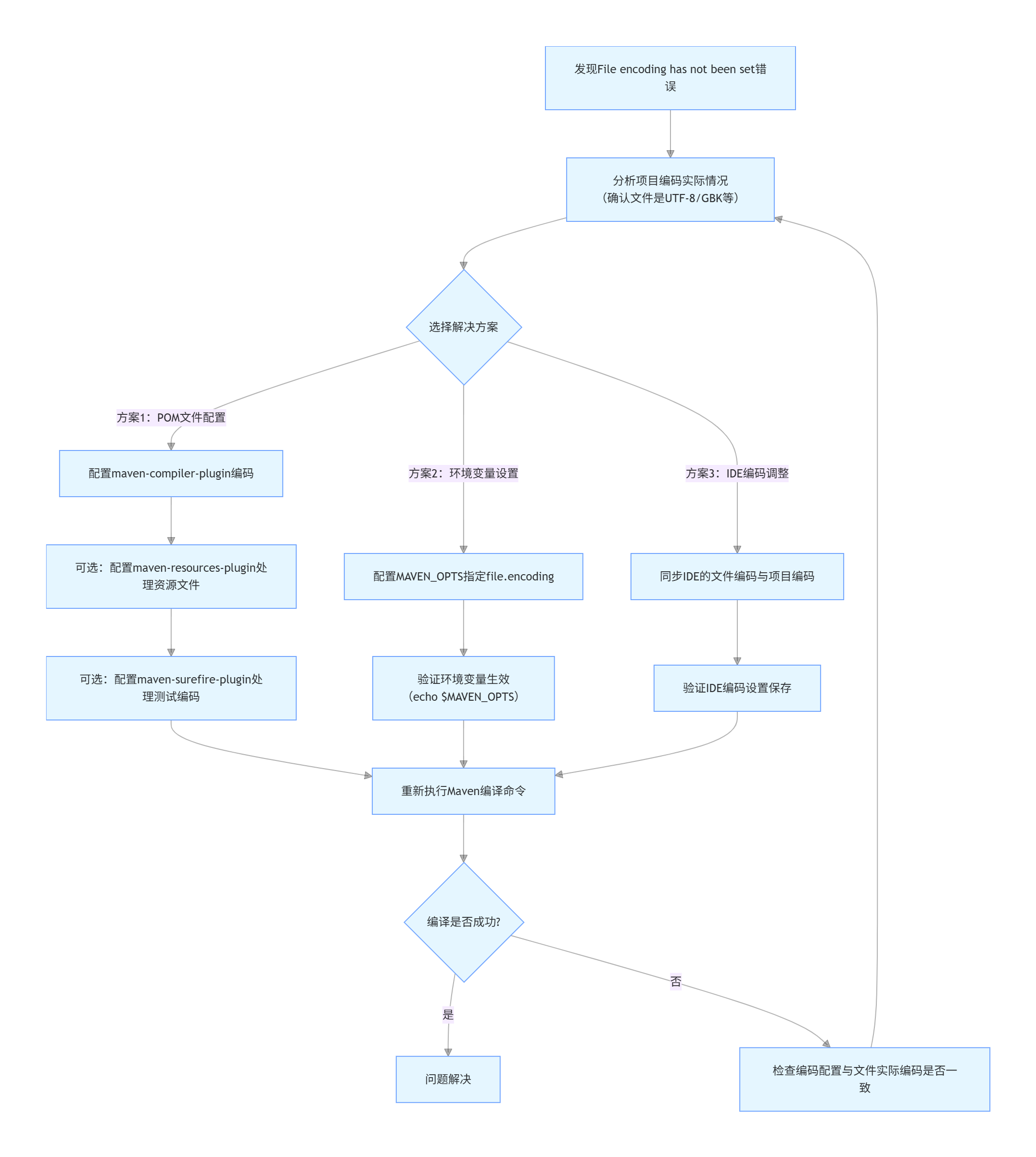 通过上述配置,你可以确保在Maven编译、资源复制以及测试执行过程中都使用了正确的文件编码,从而避免“File encoding has not been set”错误。这些配置可以放在项目的根pom.xml文件中,也可以放在子模块的pom.xml文件中,具体取决于你的项目结构和需求。