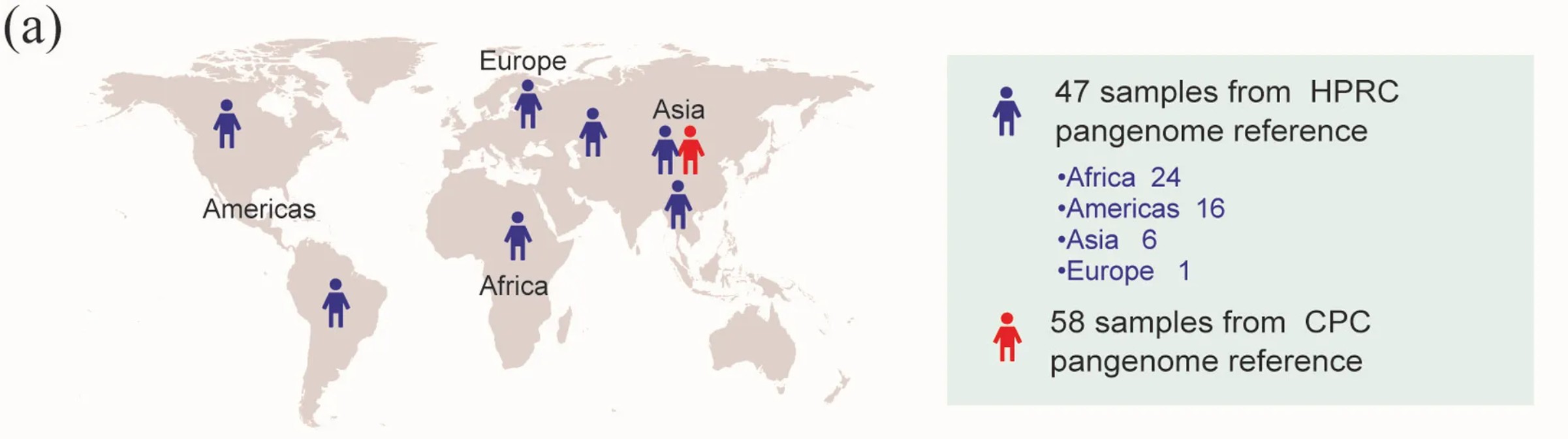 - HPRC(人类泛基因组参考联盟):47个个体,来自非洲、美洲、亚洲、欧洲四大洲;