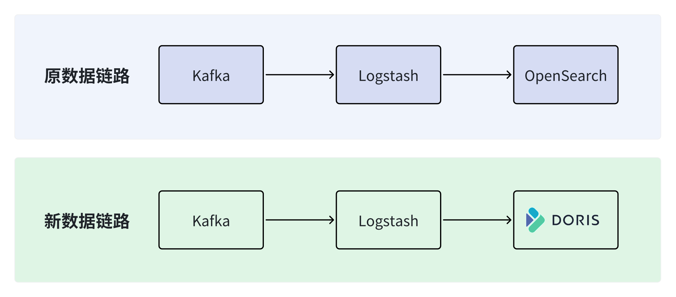 - 日志采集通道改造 :原使用 Kafka → Logstash → OpenSearch 采集链路,我们替换为 Kafka → Logstash → Doris Stream Load,实现高吞吐、低延迟的数据写入。