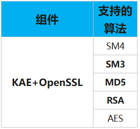 云服务实例支持硬件KAE单元的虚拟化,支持kAE系列实例提供加解密关键能力。帮助客户自动完成启用kAE能力相关配置。