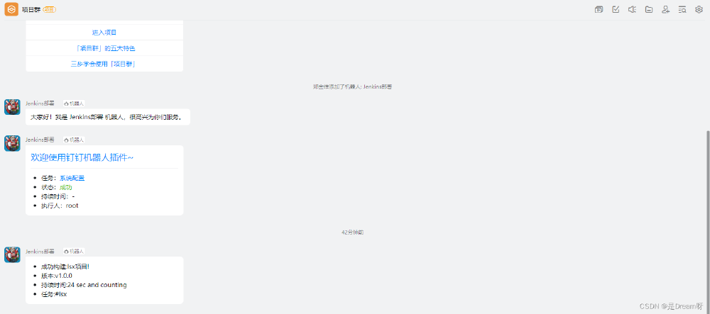 在程序部署成功后,可以通过钉钉的机器人及时向群众发送部署的最终结果通知