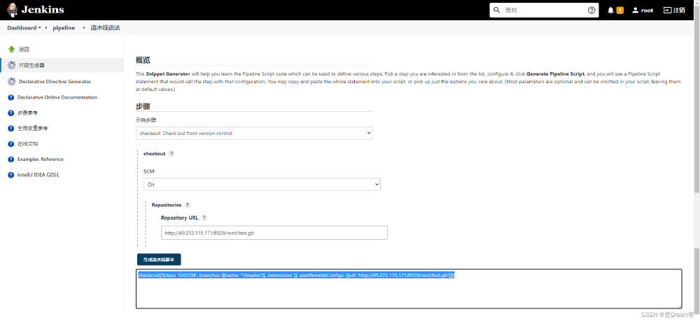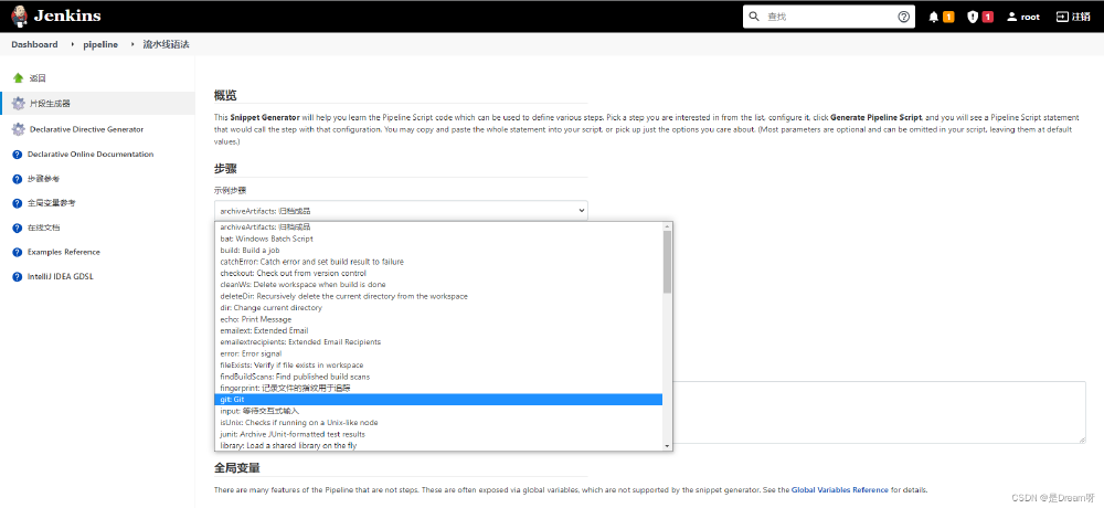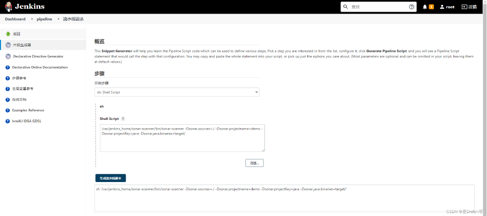 Ps:涉及到特定脚本,Jenkins给予了充足的提示,可以自动生成命令