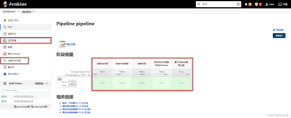 Jenkins的Pipeline可以让项目的发布整体流程可视化,明确执行的阶段,可以快速的定位问题。并且整个项目的生命周期可以通过一个Jenkinsfile文件管理,而且Jenkinsfile文件是可以放在项目中维护。