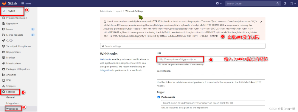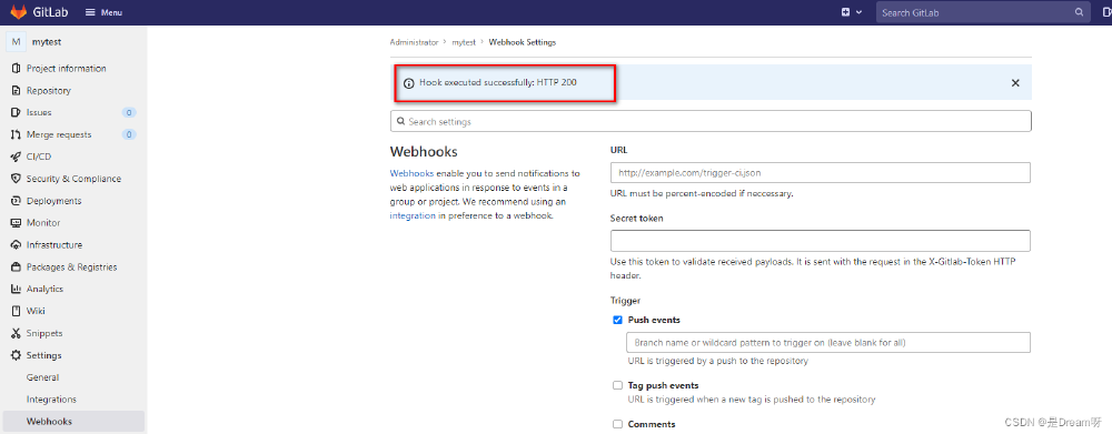 设置Gitlab的Webhooks
