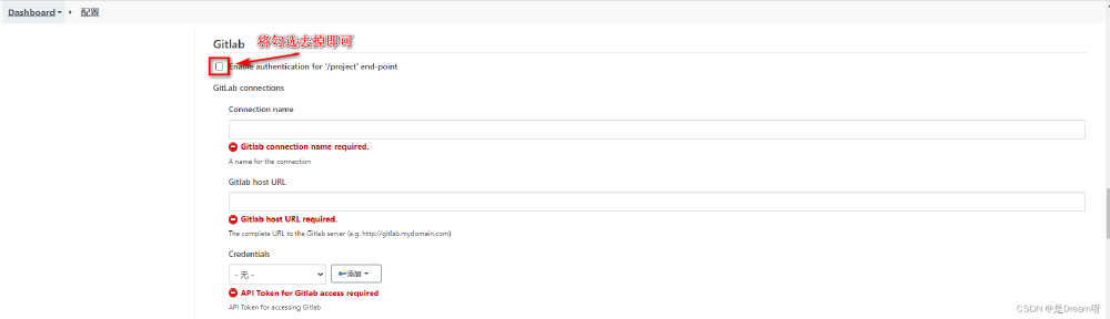 需要关闭Jenkins的Gitlab认证