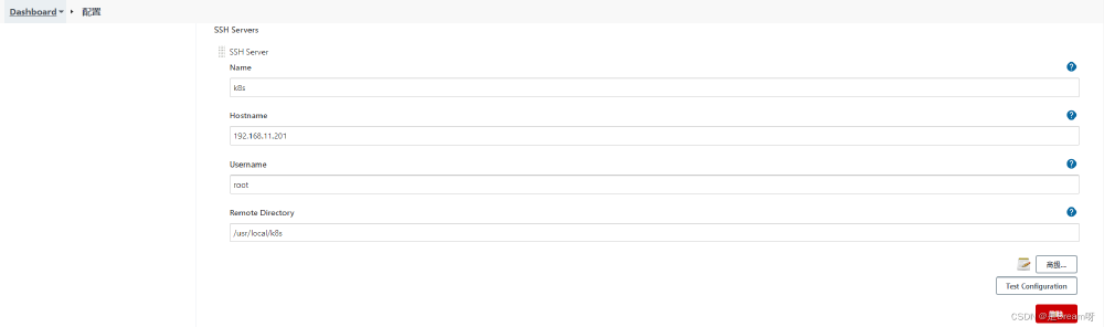 • 配置Jenkins的目标服务器,可以将yml文件传输到K8s的Master上