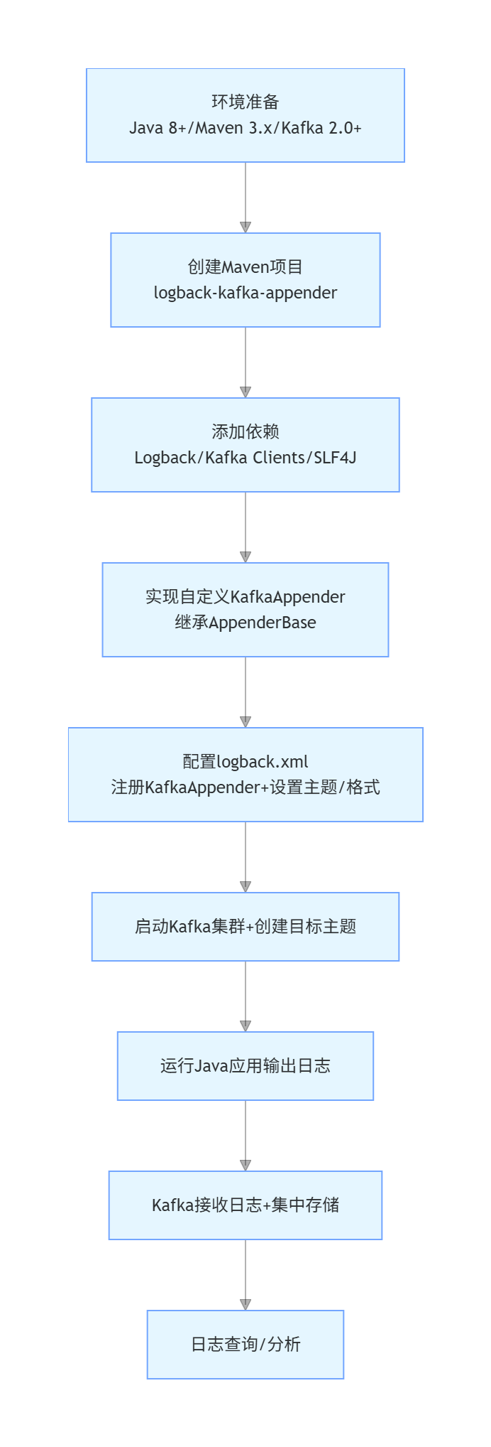 在Java应用中使用Logback作为日志框架时,如果需要将日志信息输出到Kafka,可以通过自定义Appender来实现这一功能。下面是一个详细的步骤指南和示例代码,展示如何扩展Logback以支持将日志输出到Kafka。
