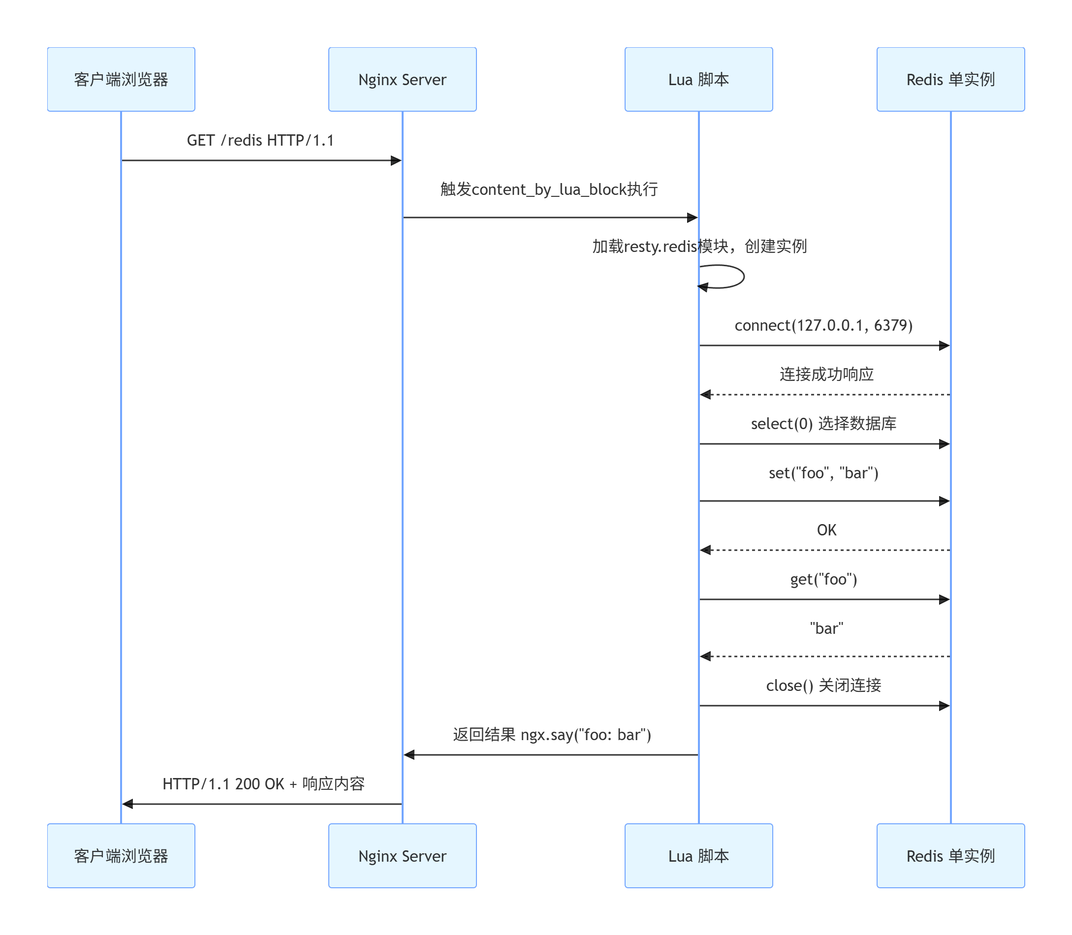 这表明Nginx已经成功通过Lua连接到Redis,并完成了数据的读取和写入。