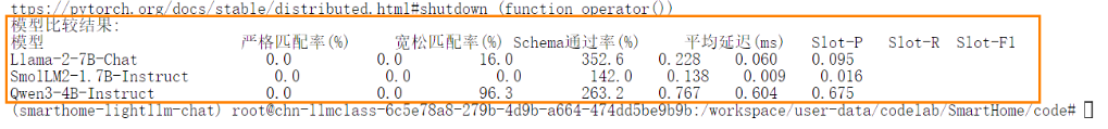 ● 输出与期望结果对比。 将模型生成的具体内容与验证集中每条样本的 expected_events 期望结果进行对比,以评估模型在内容层面的准确性。每条样本的 expected_events 列出该指令正确的执行动作列表(每个包含应执行的动作类型、设备ID、参数等)。