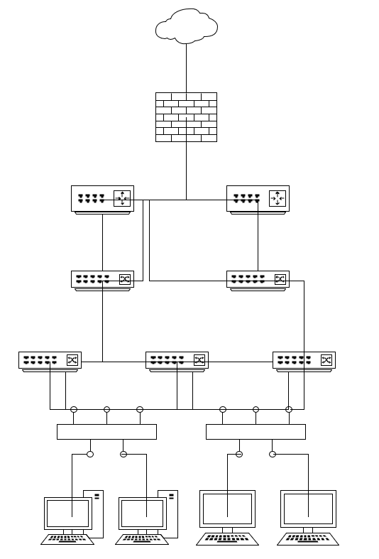 [互联网] → [防火墙] → [BRAS1+BRAS2(VRRP)] → [核心交换机] → [汇聚交换机] → [接入交换机] → [用户设备]