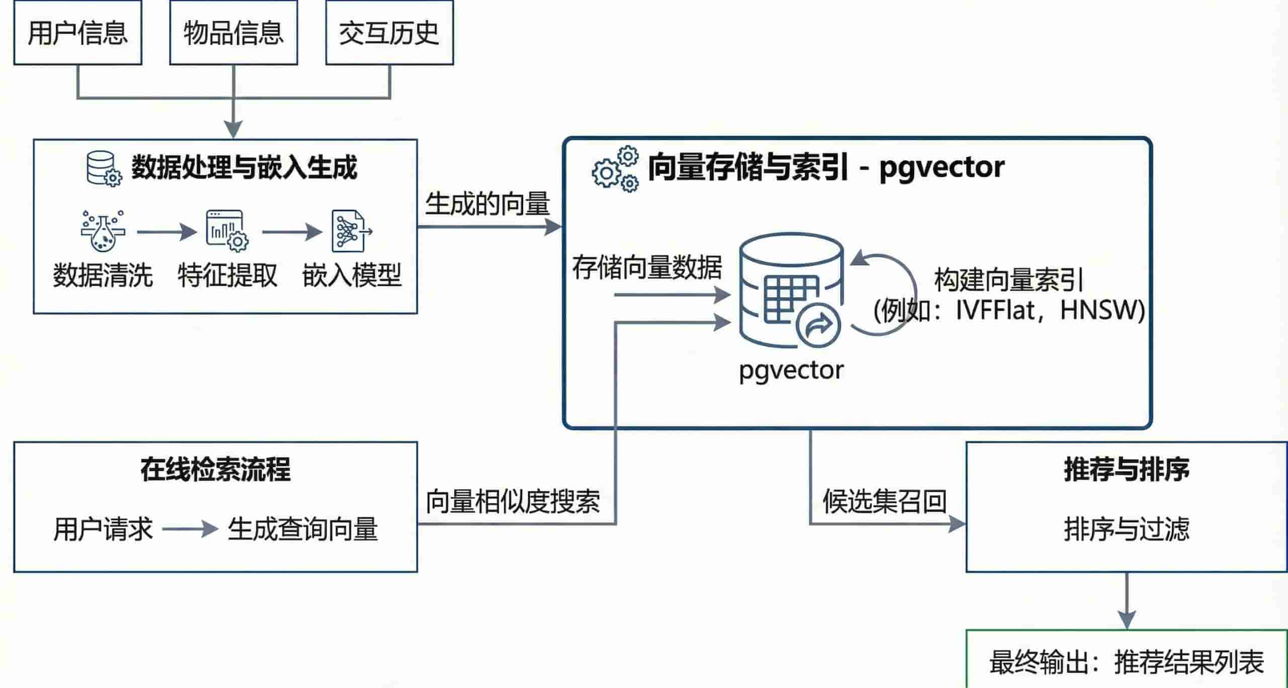 ORDER BY embedding <-> '[0.13, 0.35, -0.20, ...]' --用户搜索词的embedding