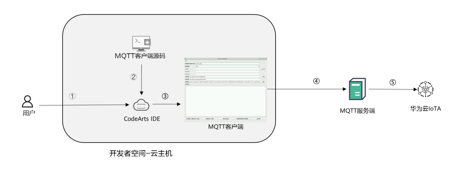 - MQTT服务器与华为云IoTA通信,像注册的设备发布和订阅消息。