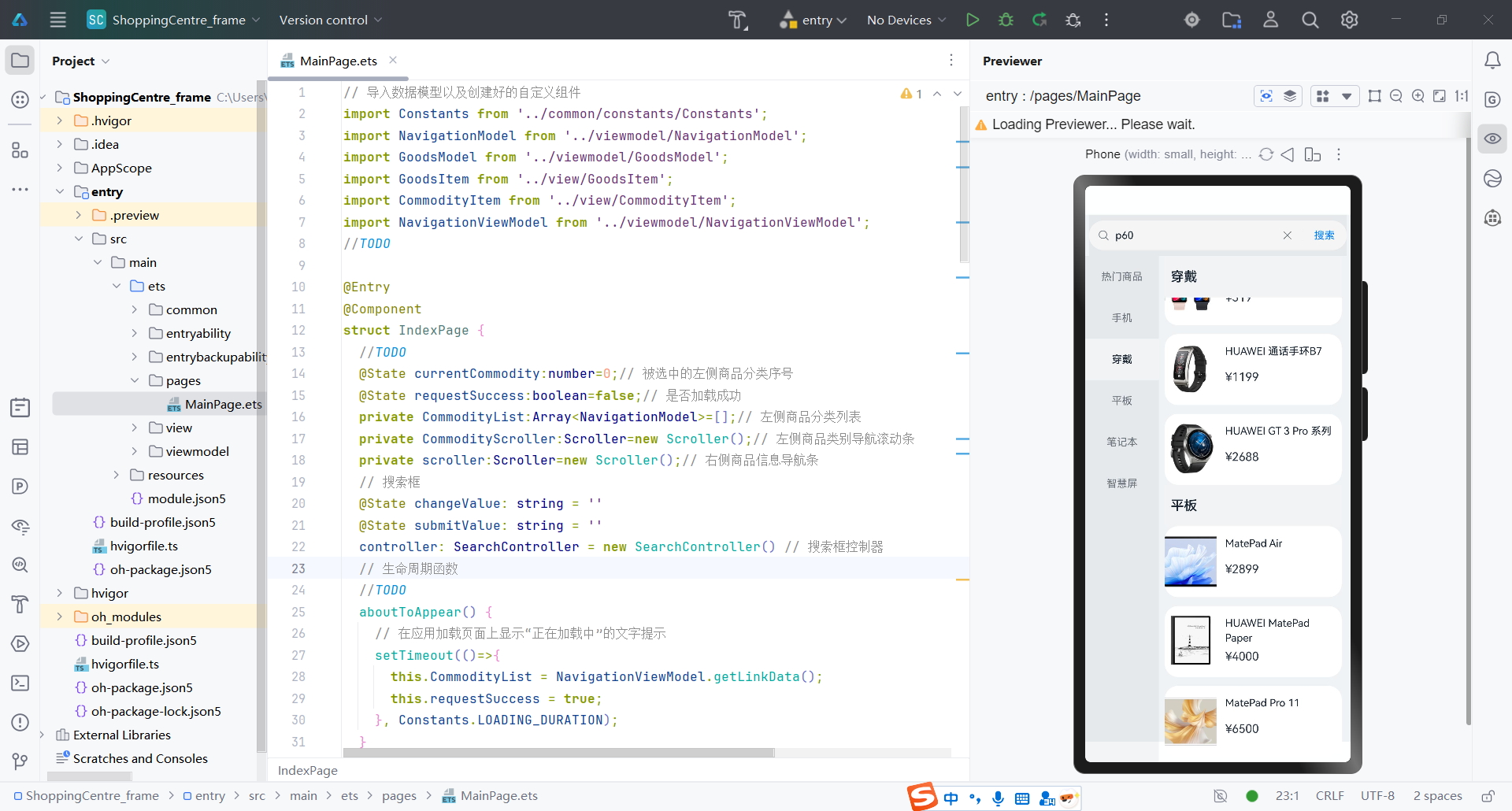鸿蒙应用入门级开发者认证实验四(华为商城应用页面)