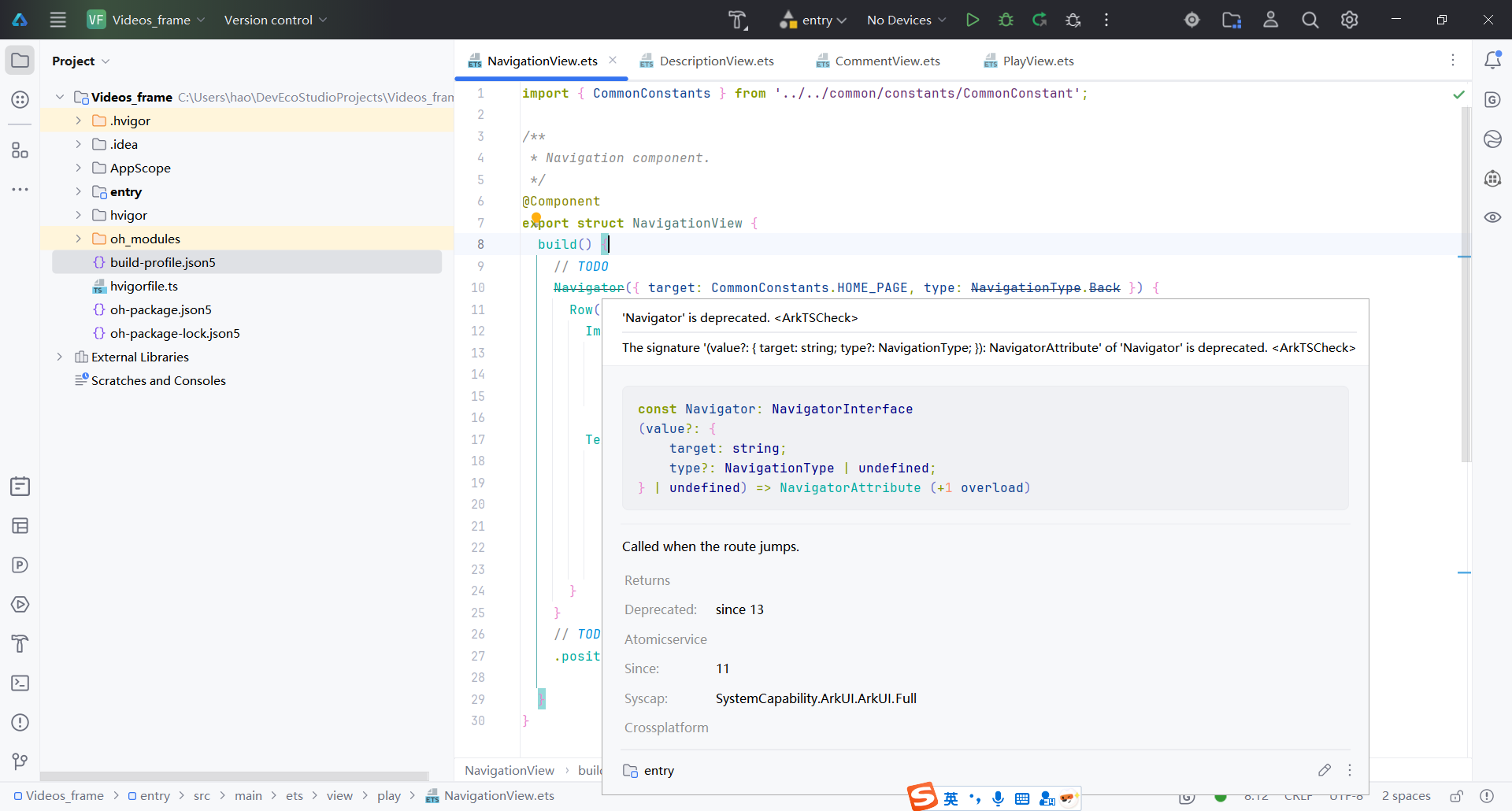 Navigator 是早期的页面导航组件,无法灵活管理页面栈(如跨页面传参、动态路由解析),缺少统一的导航状态管理机制,与新的声明式开发范式(ArkUI)兼容性不足。HarmonyOS 为提升开发效率和性能,推出更强大的 Router 模块作为替代方案。移除旧组件可避免冗余 API 对开发者的干扰。通过 @kit.ArkUI 的 router 实现导航功能: 返回目标页面(对应原 NavigationType.Back)