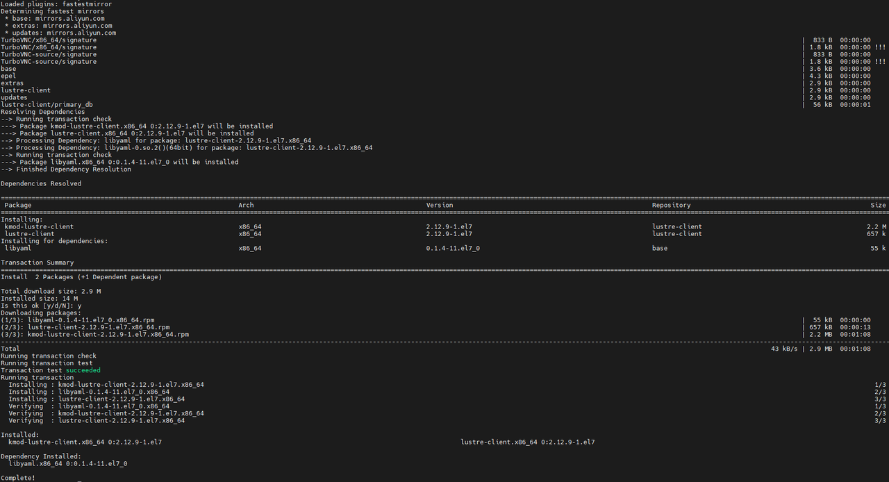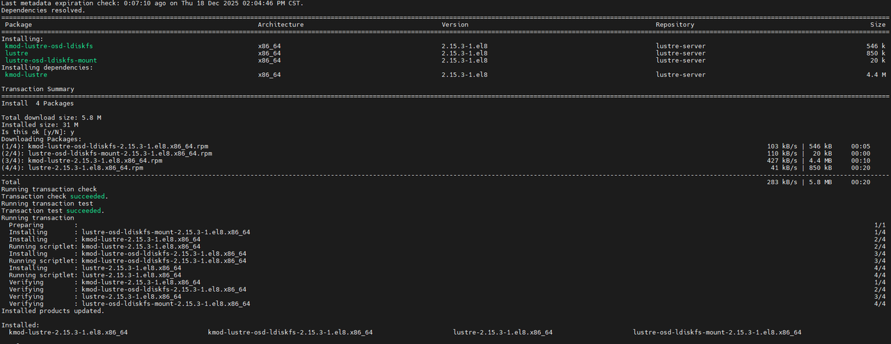 dnf install -y lustre lustre-osd-ldiskfs-mount kmod-lustre-osd-ldiskfs