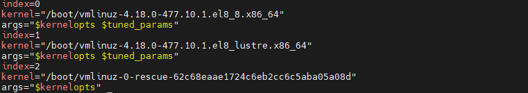 安装成功后查看当前默认使用的内核: grubby --info=ALL | grep -E "kernel|index"