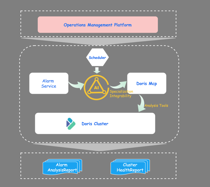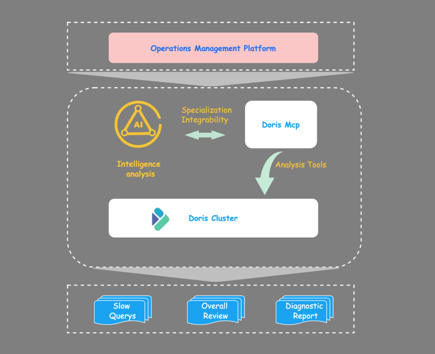 在天翼云智能运维体系的搭建中,主要依赖于 Apache Doris MCP 完成,尤其是在任务智能诊断及集群健康诊断这两项主要能力。接下来将对具体的实现及重难点进行详细介绍。