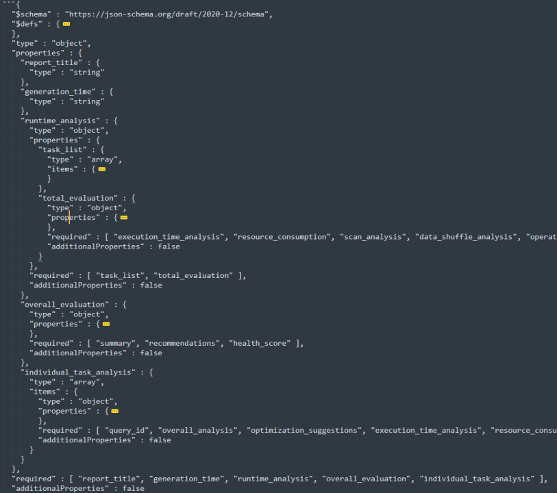 - 在任务评估时,要求 AI 针对特定维度进行分析,如运行时间、资源消耗(CPU 和内存)、数据扫描情况及其对集群的影响等。通过结构化的 SOP 限制 AI 的分析框架,使其在指定范围内输出更稳定、可靠的评估内容。