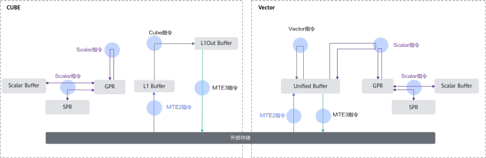Scalar单元负责各类型的标量数据运算和程序的流程控制。从功能上看,Scalar单元可以看作是一个小型的CPU,完成整个程序的循环控制、分支判断、Cube/Vector等指令的地址和参数计算以及基本的算术运算等。