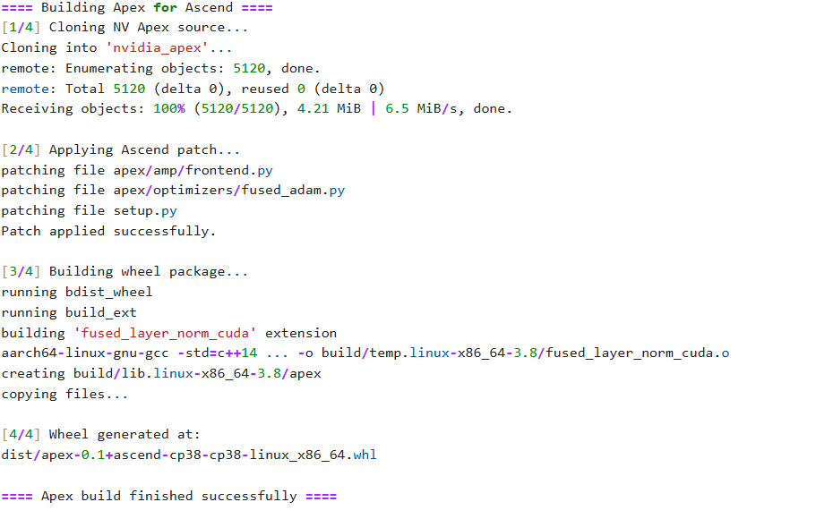 随着华为昇腾 NPU 在 AI 训练领域的广泛应用,社区基于 Apex 的实现逻辑推出了 “Apex for Ascend”——这是一套面向昇腾平台的 Apex Patch 适配方案,用户可通过对原版 NV Apex 打补丁(patch)的方式,让其支持 Ascend 架构,从而在昇腾平台上实现混合精度与分布式训练。