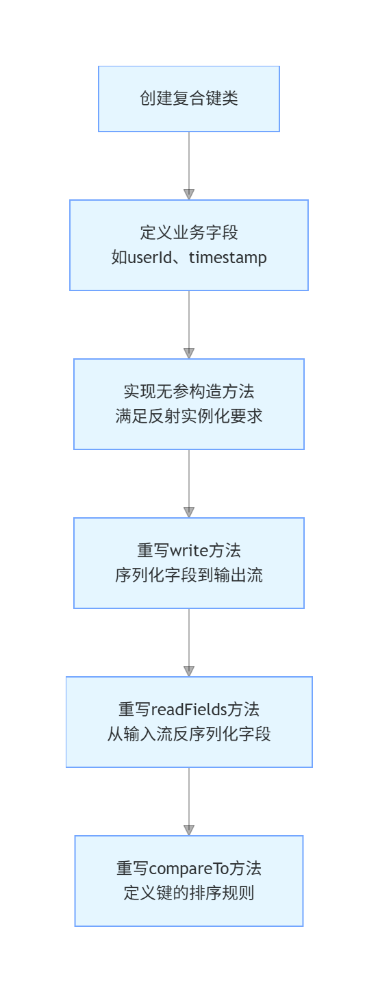 首先,我们需要定义一个复合键类,该类包含时间和用户ID两个字段。这个键类需要实现WritableComparable接口,以便能够在MapReduce框架中使用。