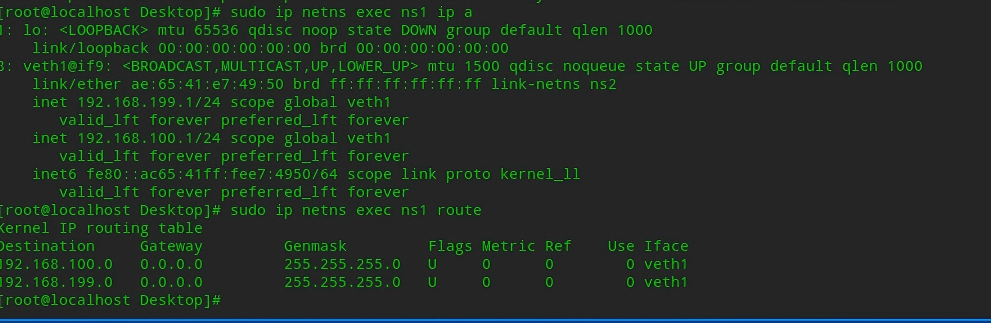 sudo ip netns exec ns1 ip a