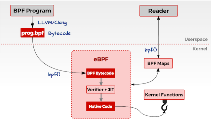 eBPF 全称 extended Berkeley Packet Filter。一般来说,要向内核添加新功能,需要修改内核源代码或者编写内核模块来实现。而 eBPF 允许程序在不修改内核源代码,或添加额外的内核模块情况下运行。