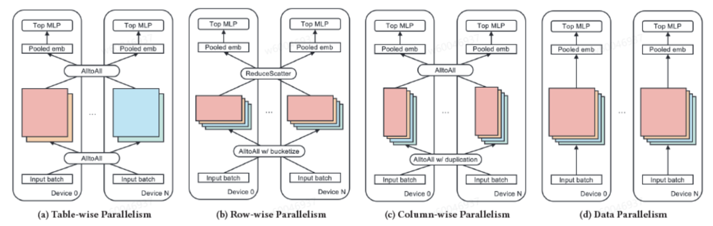 分片(sharding)机制是针对大规模数据(如亿级实体、TB 级数据)的优化方案,通过将数据分割为多个部分,以提升处理效率和模型性能。如下图所示:常见分片类型包括表分片(Table-Wise)、行分片(Row-Wise)、列(Column-Wise)和DP。结合多级缓存策略可进一步优化存储资源(如平衡 NPU 显存 HBM 与 CPU 内存 DDR 的负载)。