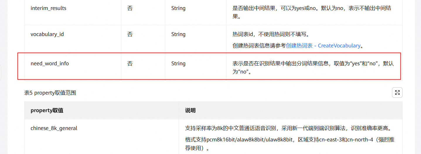【摘要】 参考:https://support.huaweicloud.cn/api-sis/sis_03_0095.html将need_word_info设置为yes在代码中,代码通常为:request.set_need_word_info("yes")、 request.setNeedWordInfo("yes")
