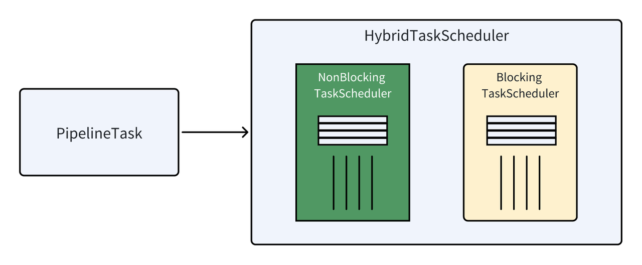 具体实现上,原有统一的 TaskScheduler 被拆分为两类调度器,共同构成新的 HybridTaskScheduler: