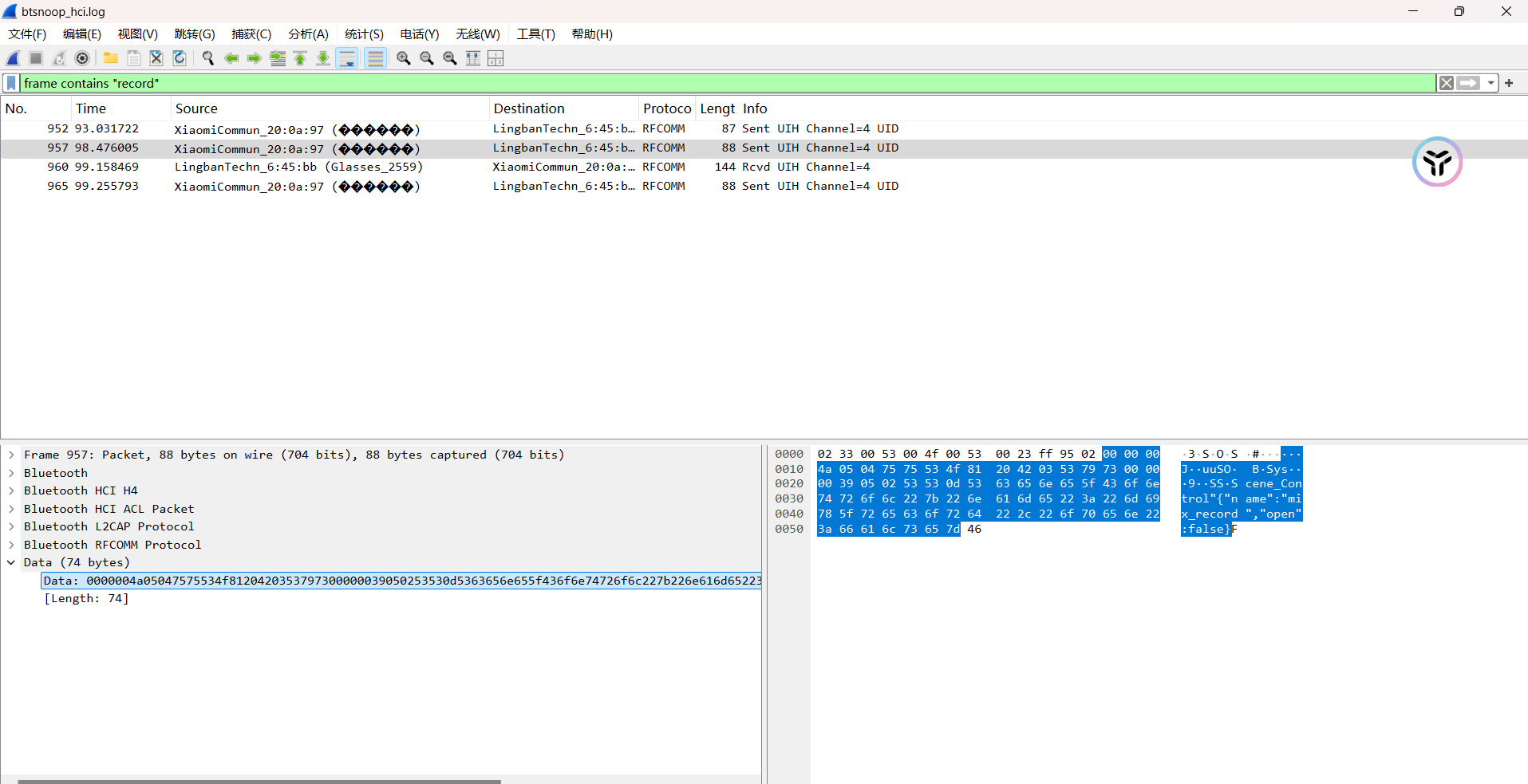 - 通过蓝牙HCI日志分析找到了AR录屏的控制协议