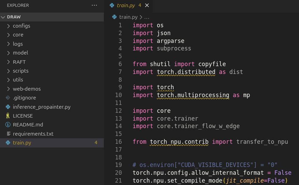 如果想使用昇腾910B显卡训练ProPainter,需要改写代码。使用的Ascend Extension for PyTorch(https://gitcode.com/Ascend/pytorch)的版本:7.1.0。