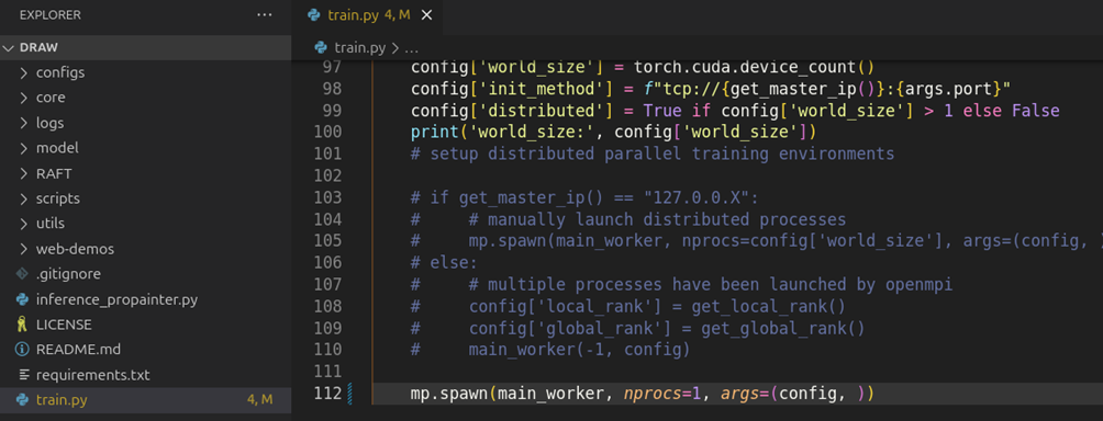 line 111, in <module> mp.spawn(main_worker, nprocs=8, args=(config,2))